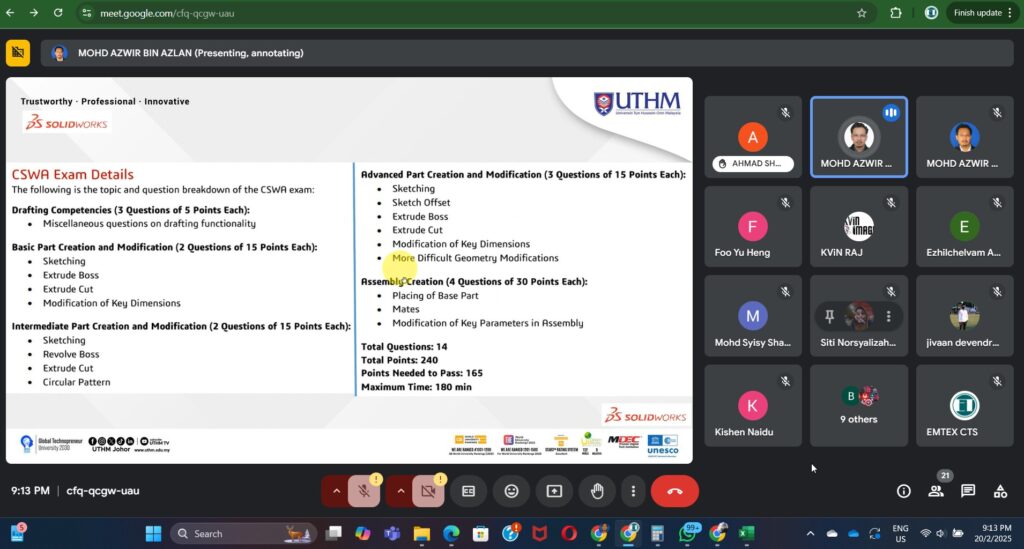 Certified SOLIDWORKS CAD Design Association (CSWA)